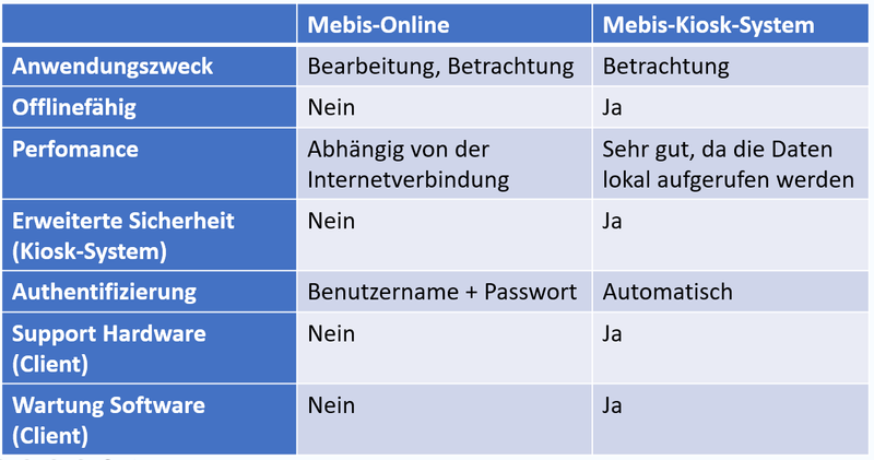 Ja, allerdings muss man hier zwischen dem Mebis-Kiosksystem und Mebis-Online unterscheiden.